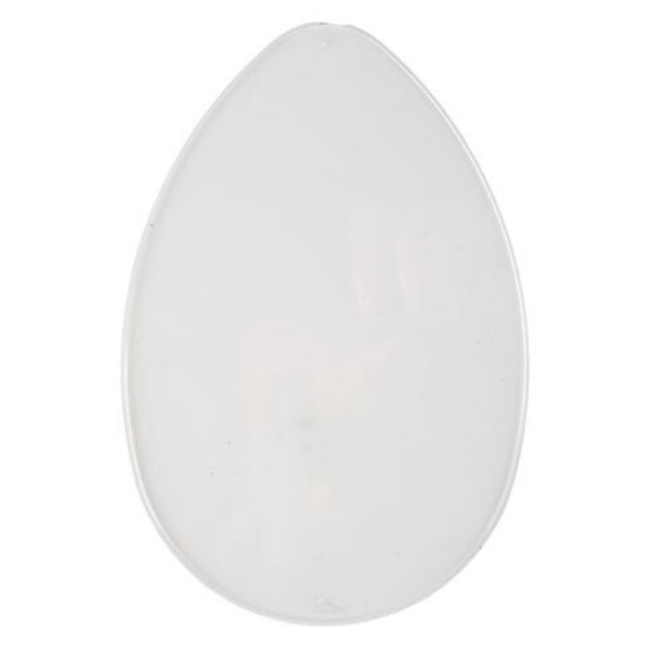 Divisorio per uovo apribile in plastica trasparente. Essendo forato alla base, può essere utilizzato anche come decorazione da appendere.