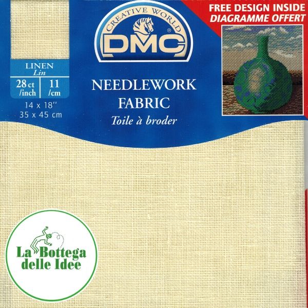 Tessuto da ricamo a punto croce prodotto da DMC. Puro lino con 110 fili in 10 cm (28 cts/inch o 11/cm) corrispondente a 55 punti croce (se presi 2 fili x 2 fili), colore giallo chiaro (712).