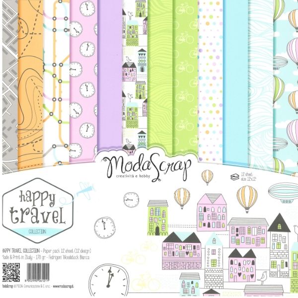 Le fantasie di Happy Travel Collection sono un disegno esclusivo di Moda Scrap. La stampa (solo su un lato) è su carta di altissima qualità Fedrigoni Woodstock bianca da 170 g/m2, riciclata (80% da fibre di recupero e 20% di pura cellulosa ECF), colorata nell'impasto con pigmenti resistenti alla luce e con finitura liscia.