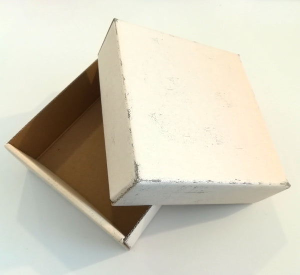Scatola in cartone avorio con effetto anticato. Misura 13,5 cm x 14 cm H 5 cm. La scatola viene fornita da montare.